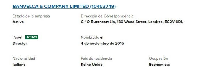 Julio Herrera Velutini aparece actualmente como director de BANVELCA & COMPANY LIMITED, empresa con sede en Londres, Reino Unido, donde el banquero tendría otras inversiones.