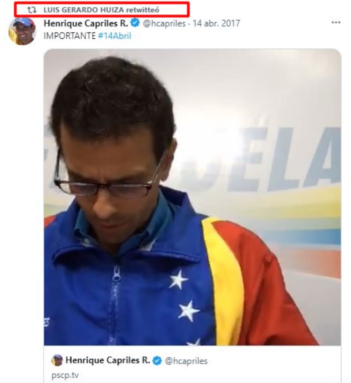 Contradictoriamente, pese a sus negocios con la administración chavista, en 2017 Luis Gerardo Huiza (@lghuiza), quien figura como fundador y CEO de Desarrollos Ingteka 20.010 CA, promocionaba en Twitter un mensaje en video del político opositor Henrique Capriles Radonski en el que éste se refería a las manifestaciones de la oposición en las calles y en 2018 hacía lo propio con una actividad proselitista del entonces candidato presidencial Henri Falcón.