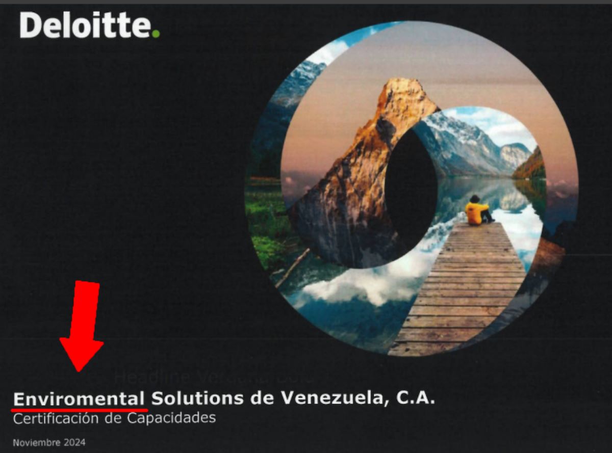 Sin embargo, una inspección más atenta de este supuesto aval revela una chapuza que delata la improvisación rampante que parece signar cada movimiento de CIVCA. En el documento que certifica la capacidad de Esvenca, una de las joyas de la corona de Vargas para este plan, Deloitte incurre en un descuido garrafal: el nombre de la empresa aparece repetidamente mal escrito como «Enviromental Solutions de Venezuela, C.A.», omitiendo una «n» fundamental. El nombre correcto, «Environmental Solutions de Venezuela C.A.», figuraba incluso en la propia (y ya desaparecida) página web de la compañía. Este error, lejos de ser una simple errata, es una metáfora perfecta del plan en su totalidad: una apariencia de solidez que se desmorona ante el más mínimo escrutinio.
