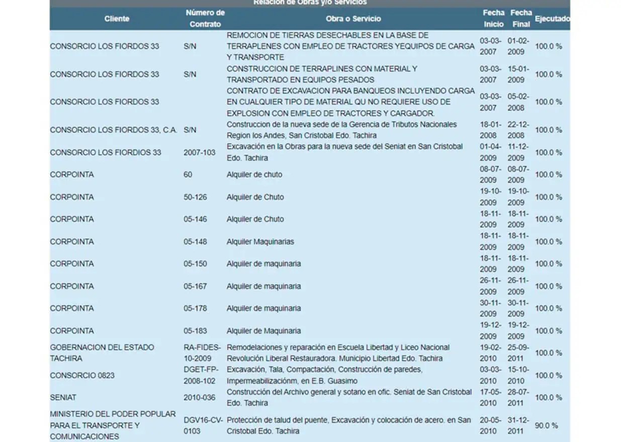 Como muestra el RNC, la Constructora Aproe obtuvo desde su fundación contratos con varios entes públicos dependientes del gobierno de Táchira, durante la gestión del pesuvista Ronald Blanco la Cruz, entre 2004 y 2008, pero también la del opositor, de raíz socialcristiana, César Pérez Vivas, entre 2008 y 2012.